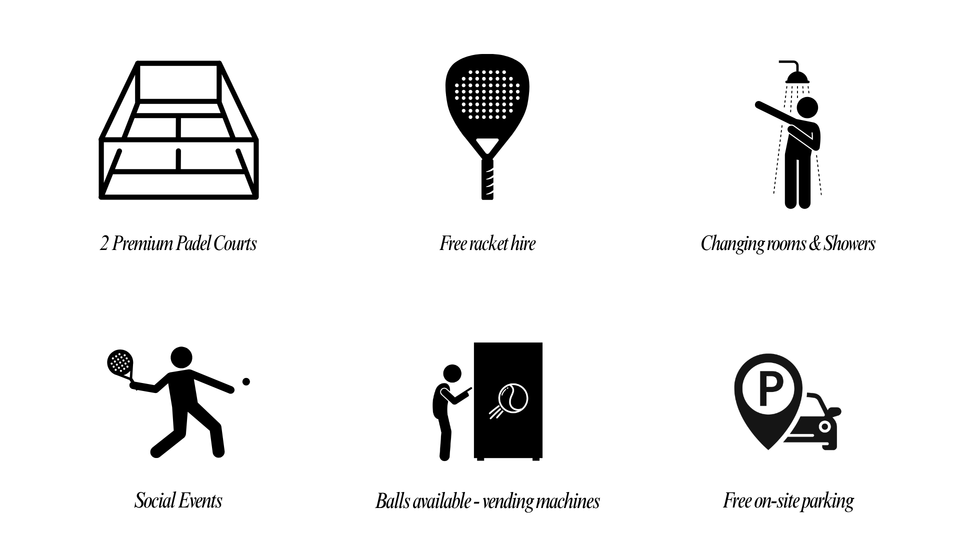 Free rackets by each court; premium rackets available to hire